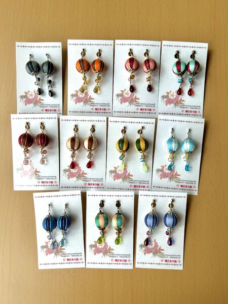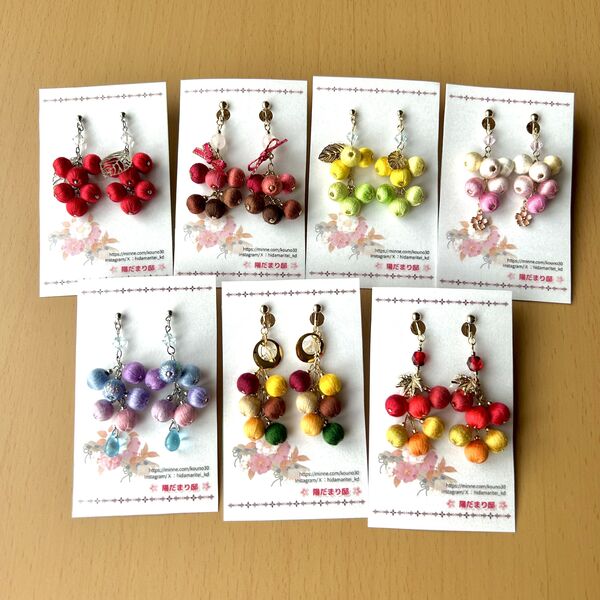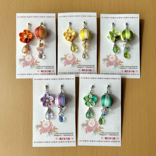 四季彩の耳飾り(つまみ細工×巻き玉)
