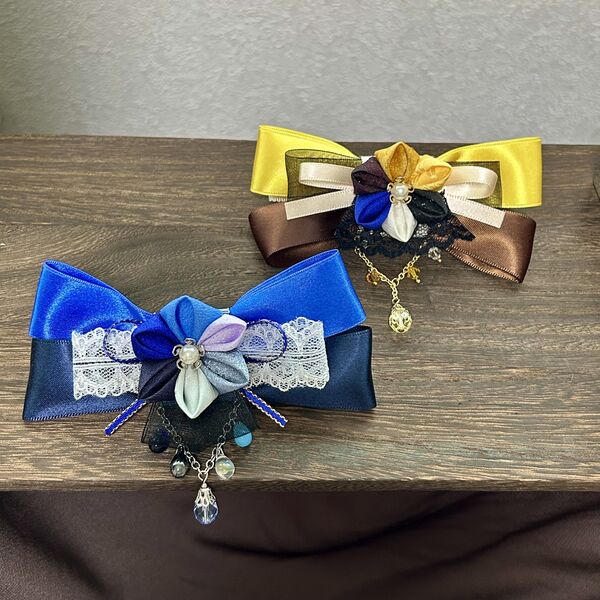 つまみ細工×サテンリボンのバレッタ