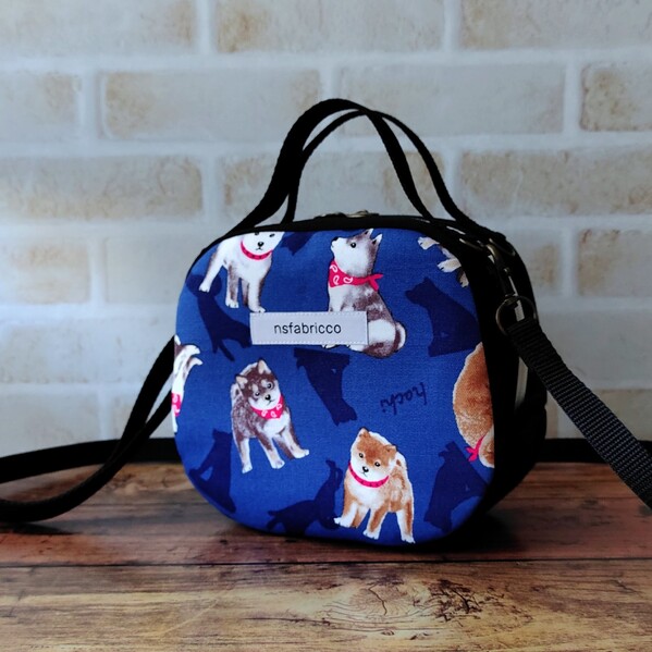豆柴柄 ころんとポシェット(ネイビー)