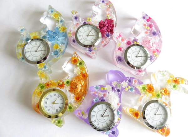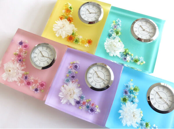 本物のお花を使ったフラワークロック(電池交換も可能。)や