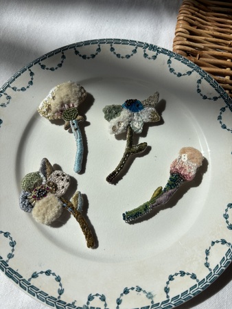 オックスフォードパンチニードルという、ラグを作る作用の針を用いて製作した、アクセサリーやインテリア雑貨を販売します。