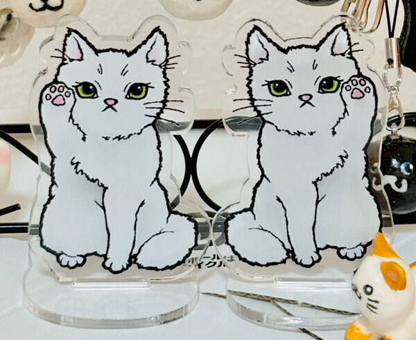 粘土やレジンを主に使った、猫オブジェ(人形)・猫モチーフアクセサリー、猫イラストカードやクリアファイルなど予定。