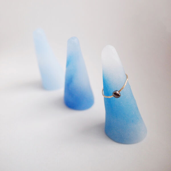 ガラスの「パート・ド・ヴェール」技法と草木染めの糸を組み合わせて、身に着けたり傍に置いてほっとできるような作品を制作しています。
