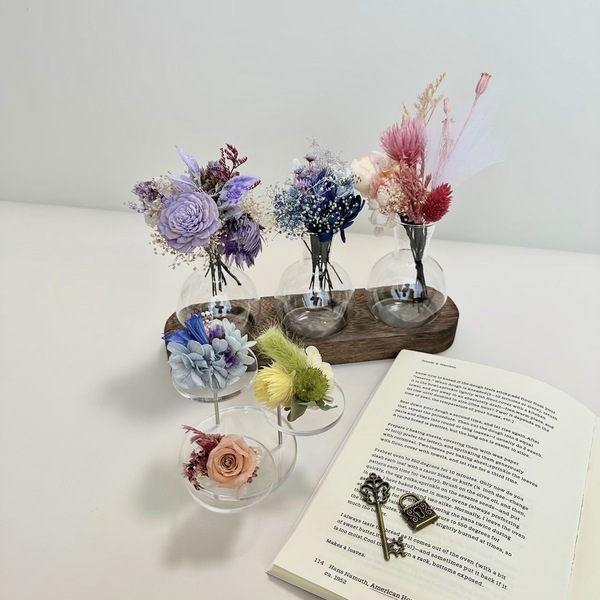 普段使いできる髪飾りや、贈り物にぴったりのミニブーケ、そしてお部屋を彩るインテリアなど、あなただけの特別な一点ものをお届けします。シンプルながらも存在感のあるデザインで、日常に少しだけ特別なひとときを添えます。