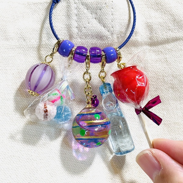 お祭りモチーフのミニチュアのフードやスイーツを、キーホルダーやバッグチャームとしてお出しします。
