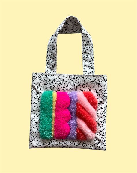 機織りやパンチニードルのバックと糸を使ったアクセサリー