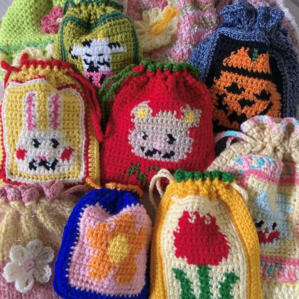 最近はドット絵を編む事にハマっているので、新作のポーチを沢山持って行きます!ぜひご覧ください!