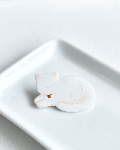 帯留『白ねこのお昼寝