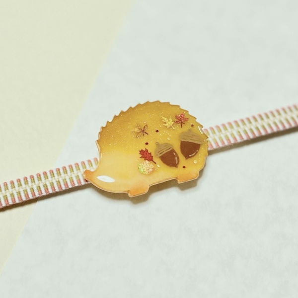 帯留/ブローチ『ハリネズミくんの秋あつめ』