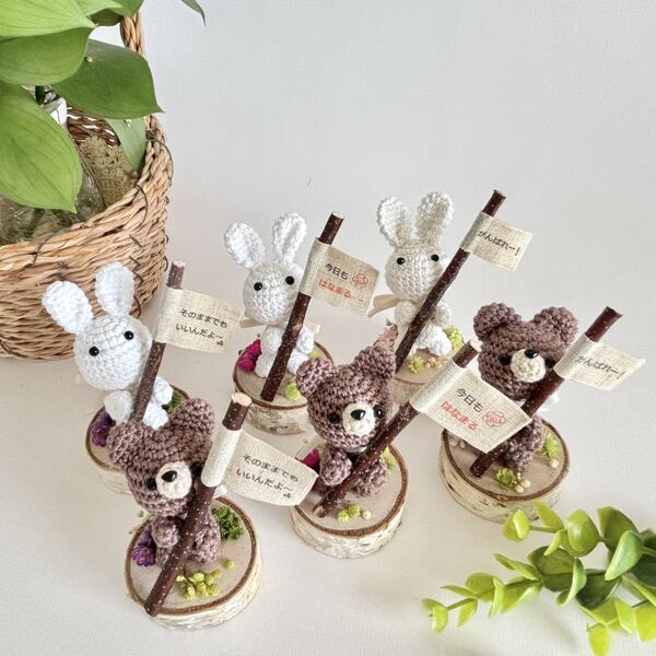 “毎日を頑張っている人達に、ほっとひと息つく瞬間を与えてくれるようなあみぐるみ”をコンセプトに、約3~6cmくらいの小さいあみぐるみをメインとした雑貨や置物を作っています。 ちょっとしたプレゼントとしてもお求めいただけます。