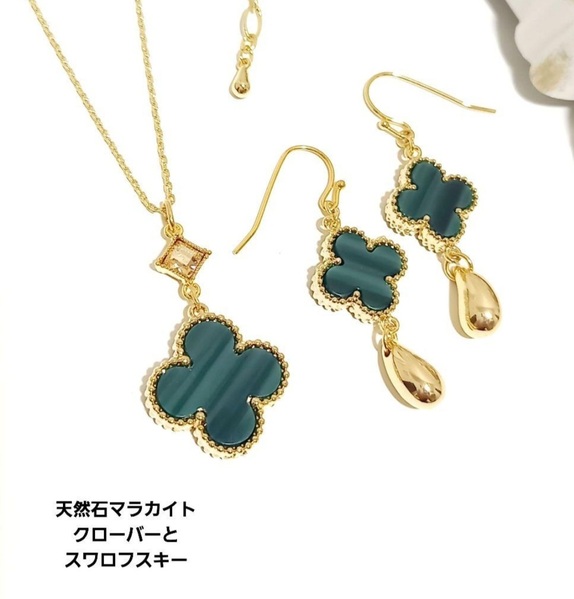 ラグジュアリーな美しさ◆天然石マラカイトのクローバーとスワロフスキーのコフレ