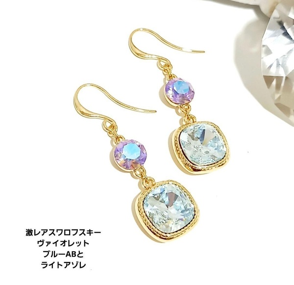 キラキラと輝く◆廃盤スワロフスキーヴァイオレットとアゾレのピアス/イヤリング