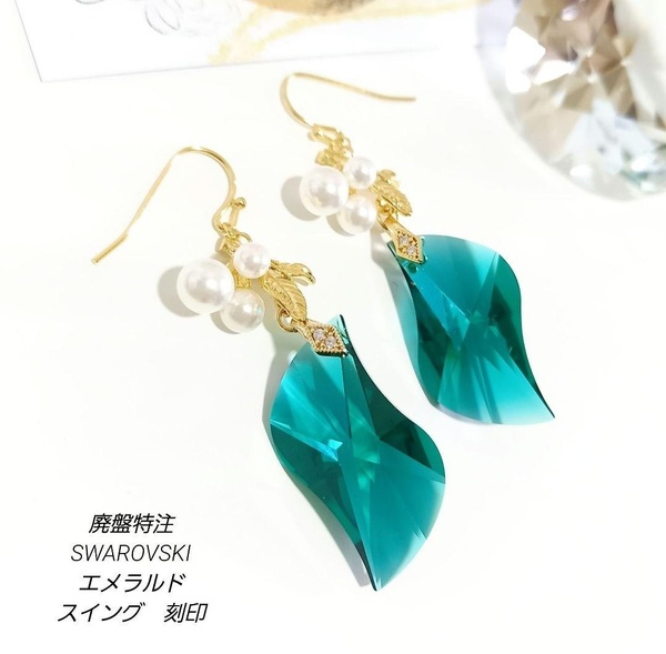 ラグジュアリーな輝き◆廃盤特注スワロフスキーエメラルドのピアス/イヤリング 刻印