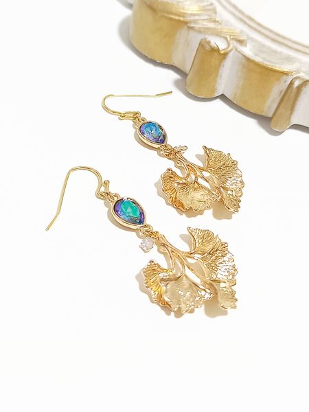 ◆輝くスワロフスキーとイチョウの葉のピアス/イヤリング