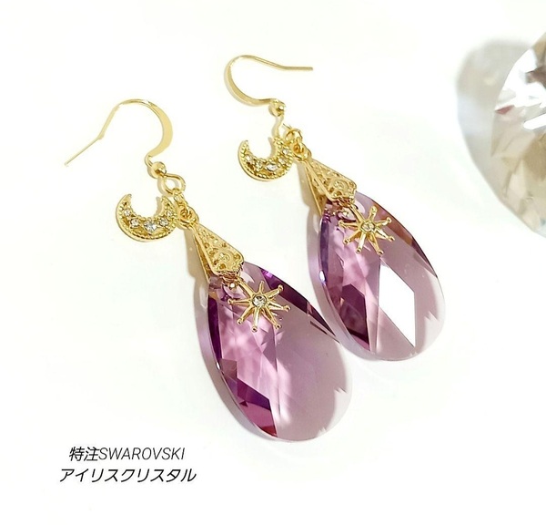 美しく上品な輝き◆特注スワロフスキーアイリスクリスタルの夜空のピアス/イヤリング