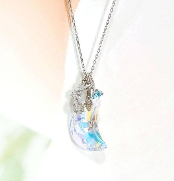 美しいオーロラの輝き◆希少スワロフスキーの三日月と流れ星ジルコニアのネックレス