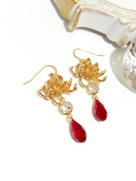 美しい彼岸花◆16kgp◆スワロフスキーシャムクリスタルのピアス/イヤリング