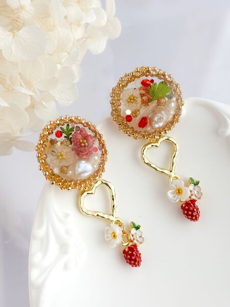 本物のお花を使用して『私の休日アクセサリー』をテーマにクラシカルな雰囲気のレジンアクセサリーを制作しています。