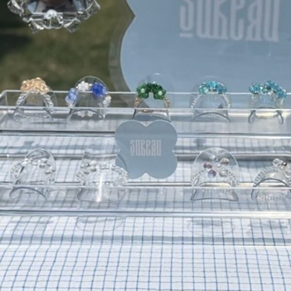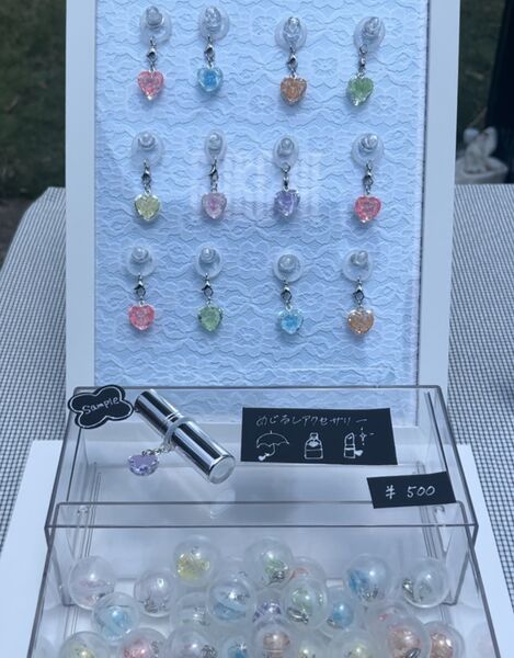 冬向けのヘアアクセサリーや、レジン・ビーズアクセサリー、ぬい服などの推し活グッズを展開します。定番の透明でキラキラしたアイテムもおすすめです!