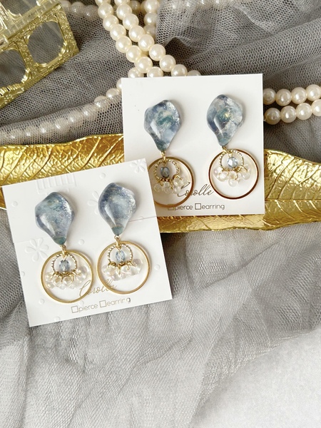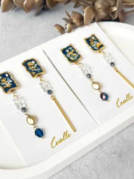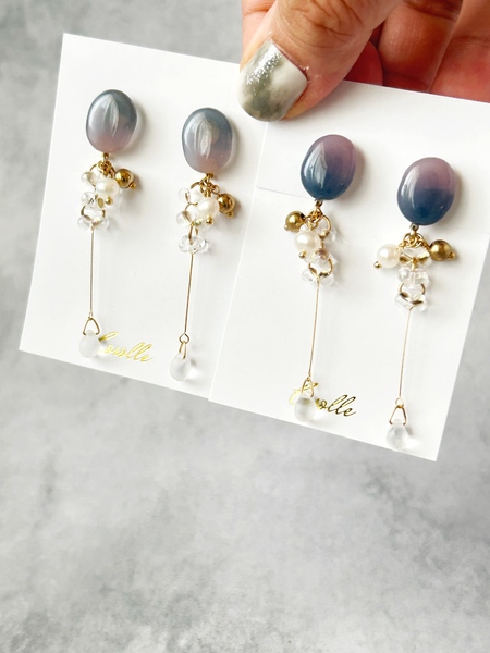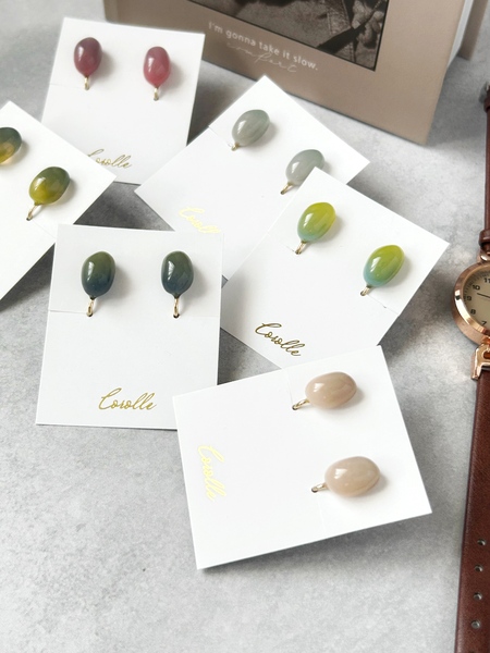 くすみカラー×ゴールドのアクセサリー ネイルや水彩を使いくすみカラーアクセサリーを制作 ひとつひとつ手書きで色付けをしています