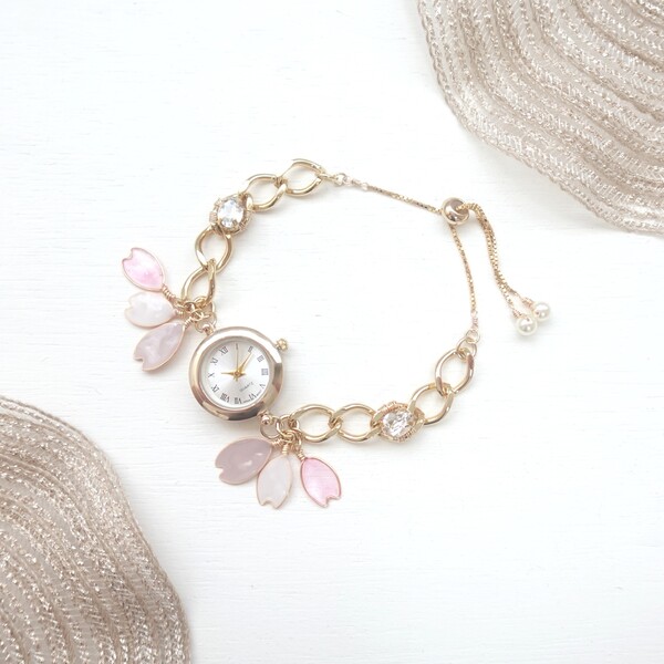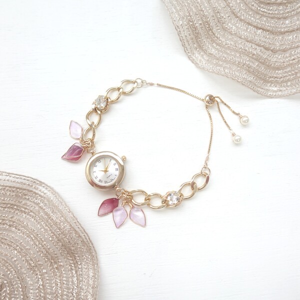 サクラのワイヤーフラワーのブレスレットウォッチ