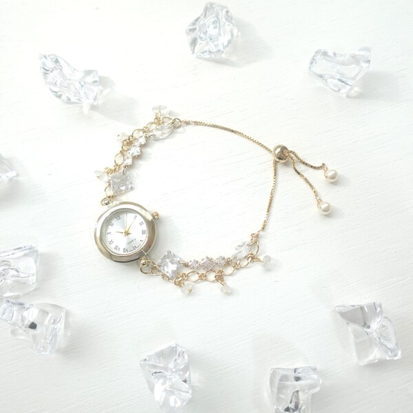 スクエアキュービックジルコニアのブレスレットウォッチ