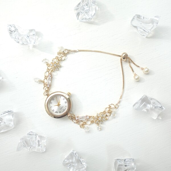 サンカヨウのワイヤーフラワーのブレスレットウォッチ