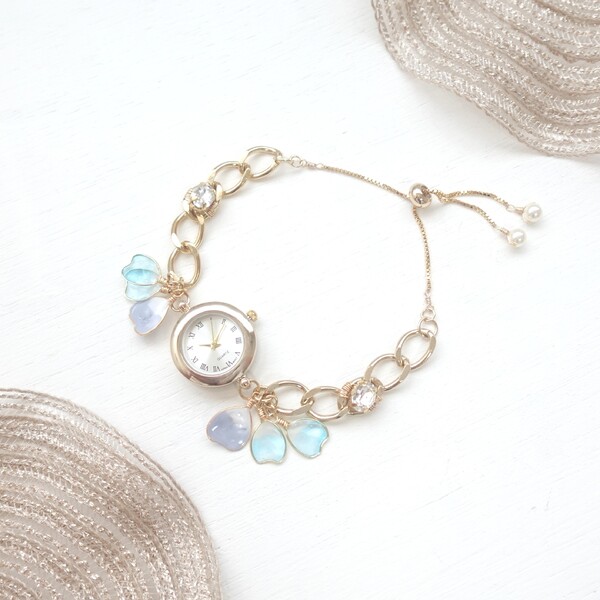ネモフィラのワイヤーフラワーのブレスレットウォッチ