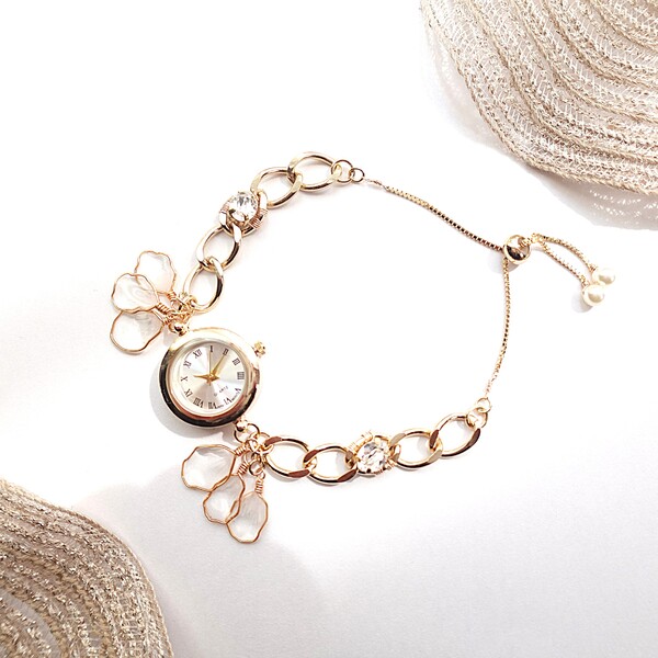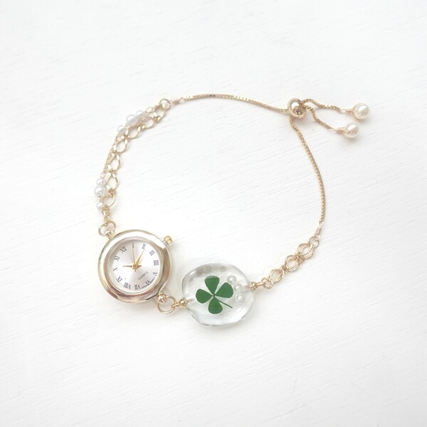 幸せをよぶ四つ葉のクローバーのブレスレットウォッチ