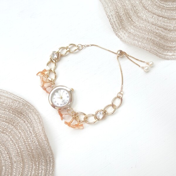 キンモクセイのワイヤーフラワーのブレスレットウォッチ