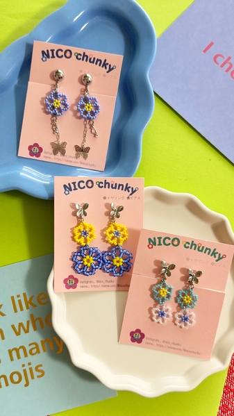 カラフルポップなお花のアクセサリー イヤリング、ピアス、ブレスレット、リングなど