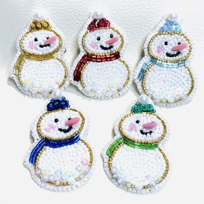 ビーズ刺繍ブローチ 雪だるまちゃん