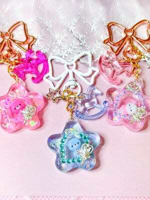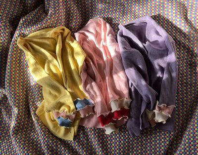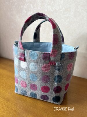ドット柄のトートバッグ (pink×light blue×グレー)