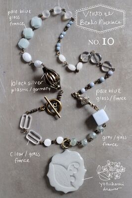 白い陶器&ヴィンテージビーズのネックレス
