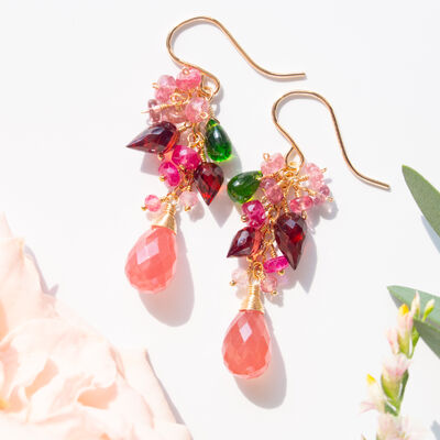 秋桜*ローズクォーツとシェルフラワー・天然石(ピンクサファイア・トルマリン)の彩りピアス(14KGF)/イヤリング