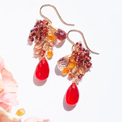 紅葉*カーネリアンと天然石の彩りピアス(14KGF)/イヤリング