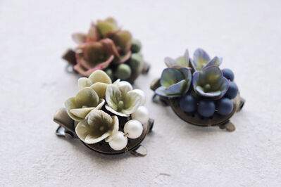 【新作】冬越しのアジサイ|アナベルとケシパールのブローチ(カラーバリエーション一例)