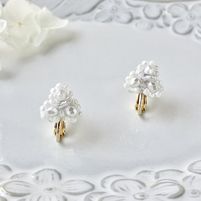 小さなお花(白)/ビーズ刺繍ピアス、イヤリング
