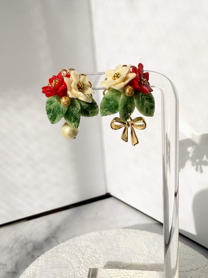 ポインセチアのクリスマスブーケのピアス