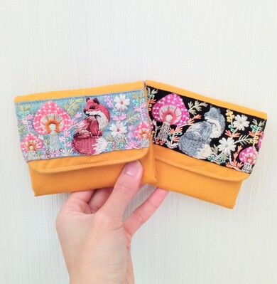 キツネのインド刺繍ミニウォレット