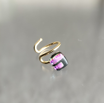ダイクロガラスのイヤーカフ(パープル&ブラックライン)
