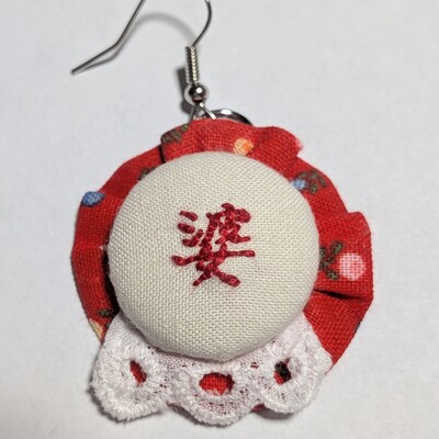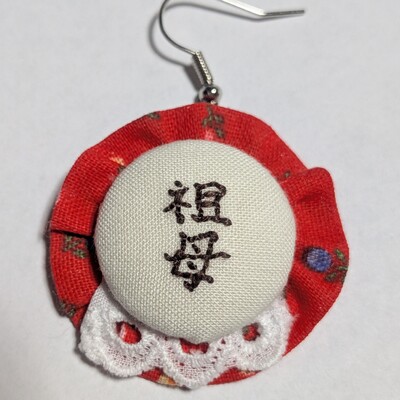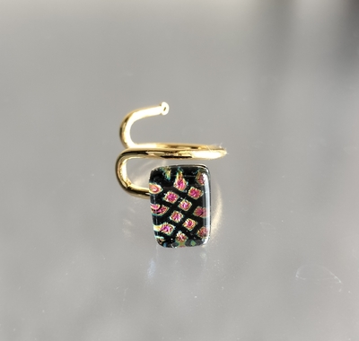 ダイクロガラスのイヤーカフ(ディープピンク&格子模様)