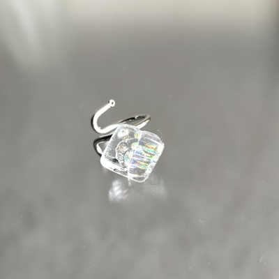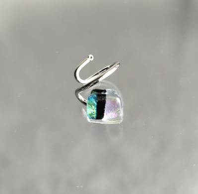 ダイクロガラスのイヤーカフ(クリア&ブラック)