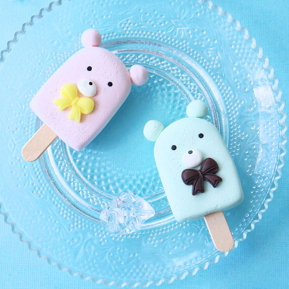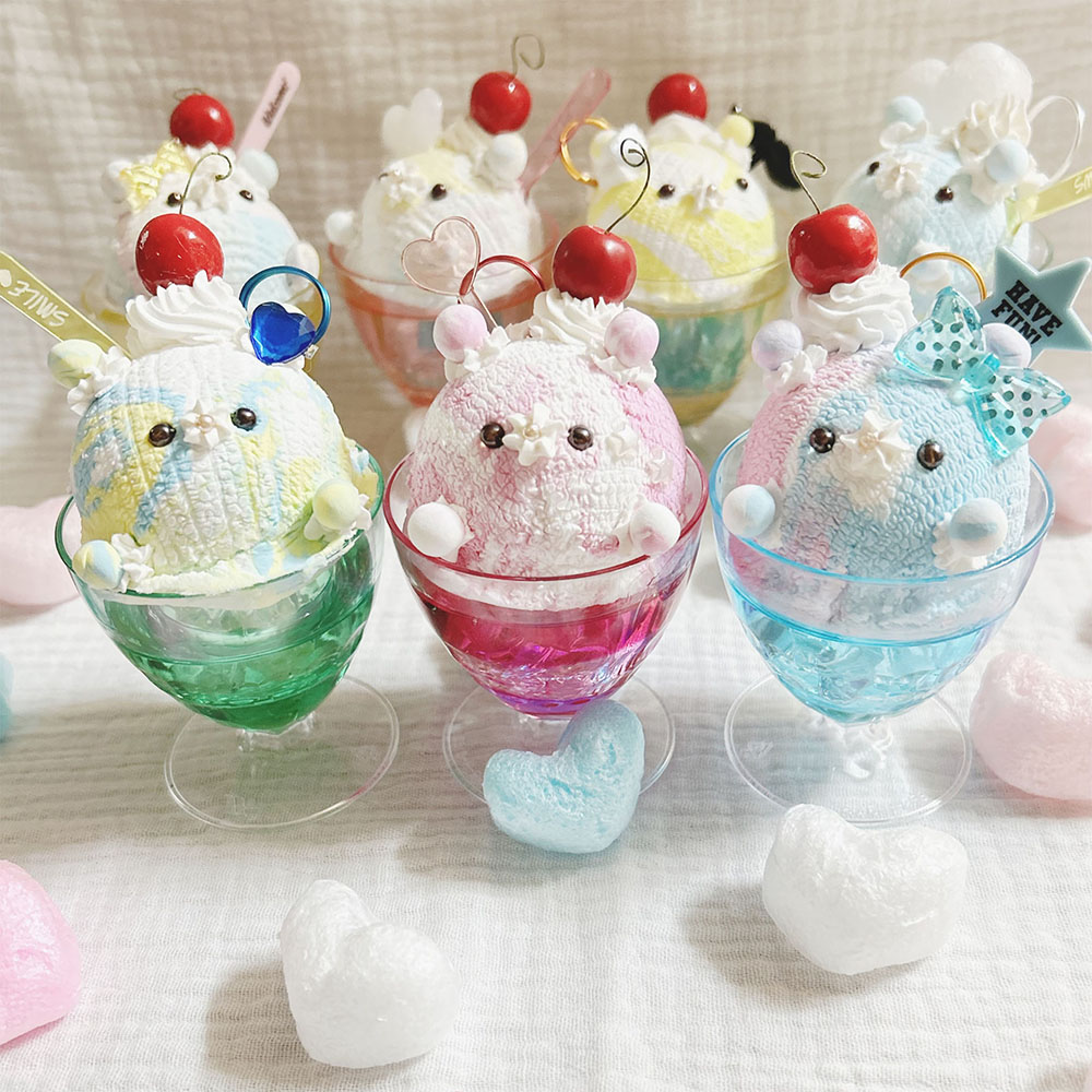 2色の粘土からマーブル模様のアイスを作ってもらいます。グラスの中から顔のアイスまですべてお客様に作っていただきます。