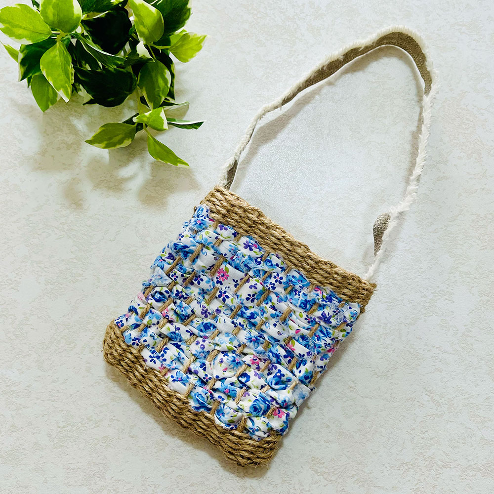 ダンボール板の簡単織り機<おりりん>を使えば両面続けて輪っかの織り地が作れます。お好きな色の布を選んで可愛い手織りポーチを作りましょう。