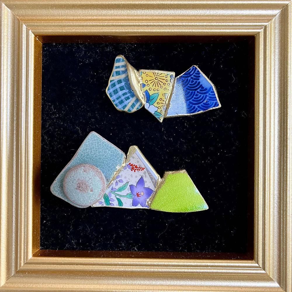 金継ぎを現代風にアレンジしたものをネオ金継ぎと名付けました。九谷焼などの陶器のカケラ、天然石、シーグラスなどを継いで箸置き(カラトリー)を男女問わず体験できる講座です。