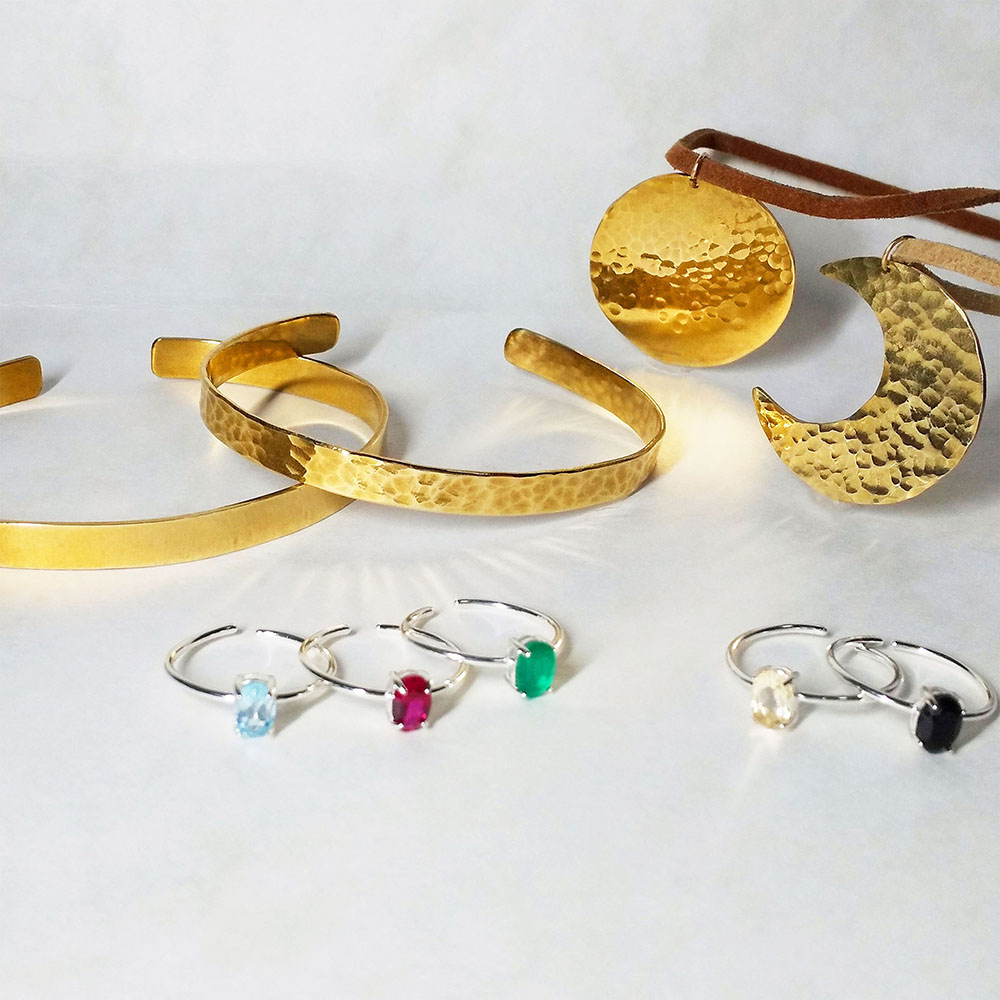 2.指輪以外は金づちで表面に模様をつける。指輪は磨き作業。