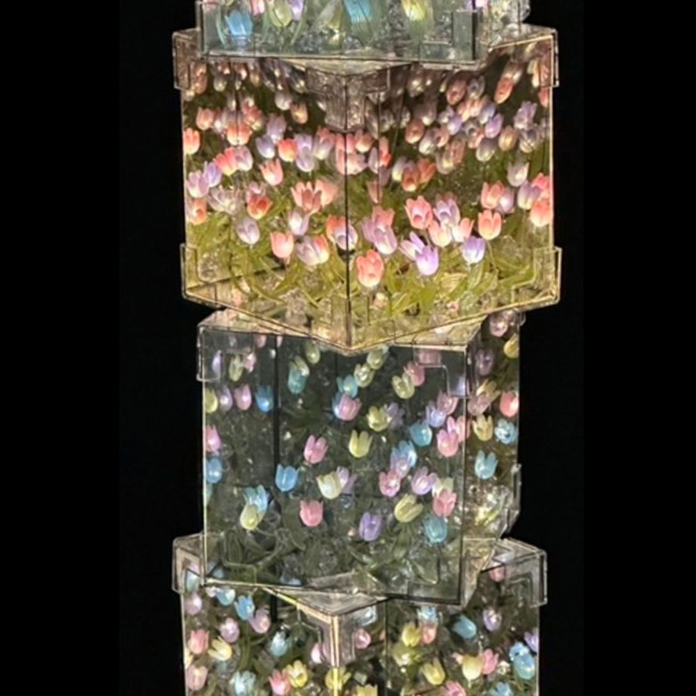 ミラーのBOXを作り、LEDライトを灯すと幻想的なお花畑が完成します。