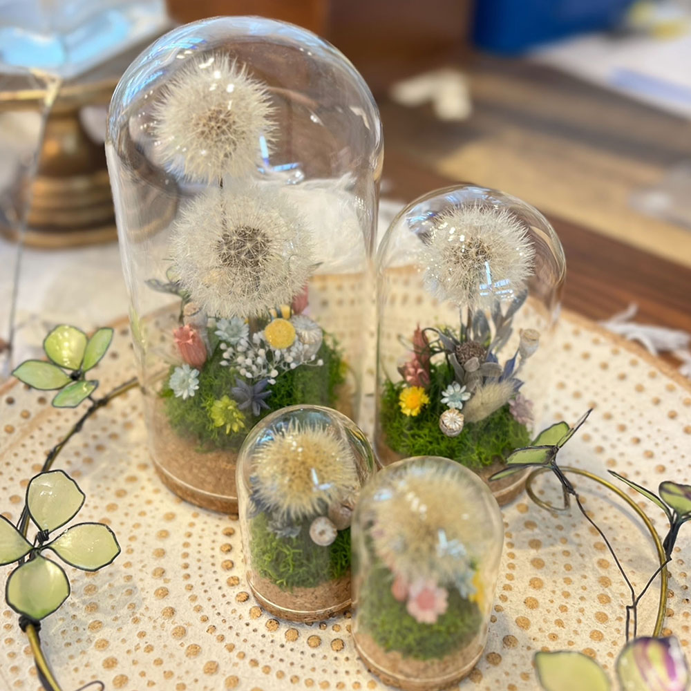 本物のたんぽぽ綿毛とドライのお花で可愛いアレンジメントを作ります♪