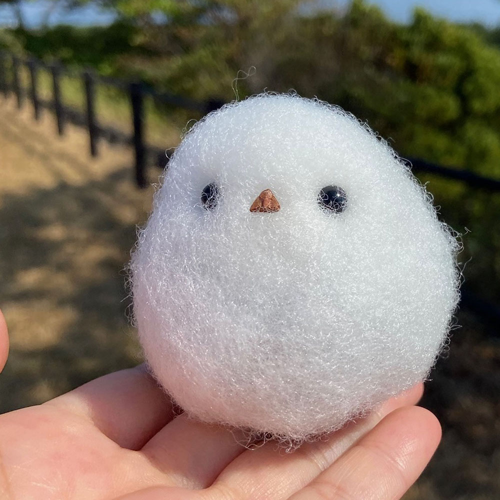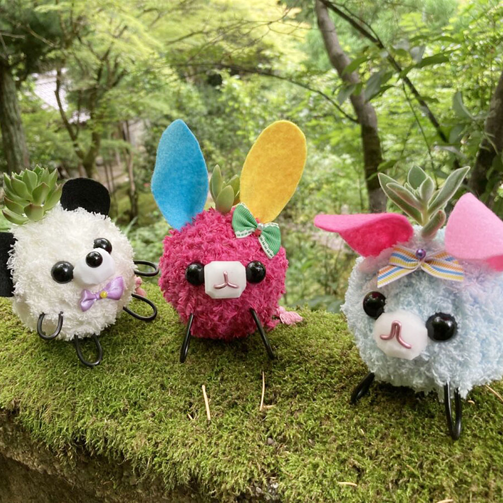 乾燥した苔玉にお好きな色糸を巻き耳と目と鼻を付け頭の上で植物を育てるワークショップです。